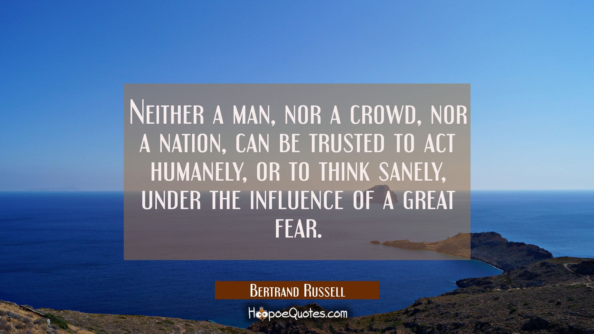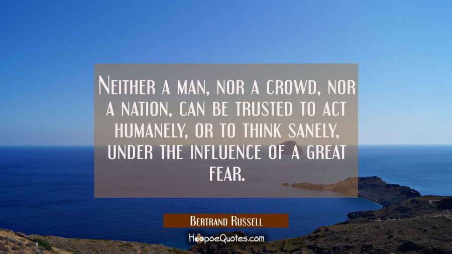 Neither a man, nor a crowd, nor a nation, can be trusted to act humanely, or to think sanely, under the influence of a great fear.