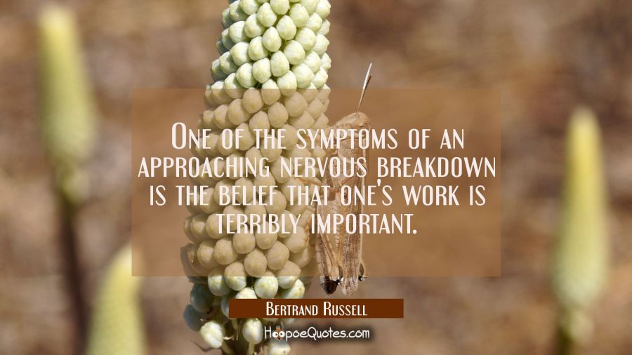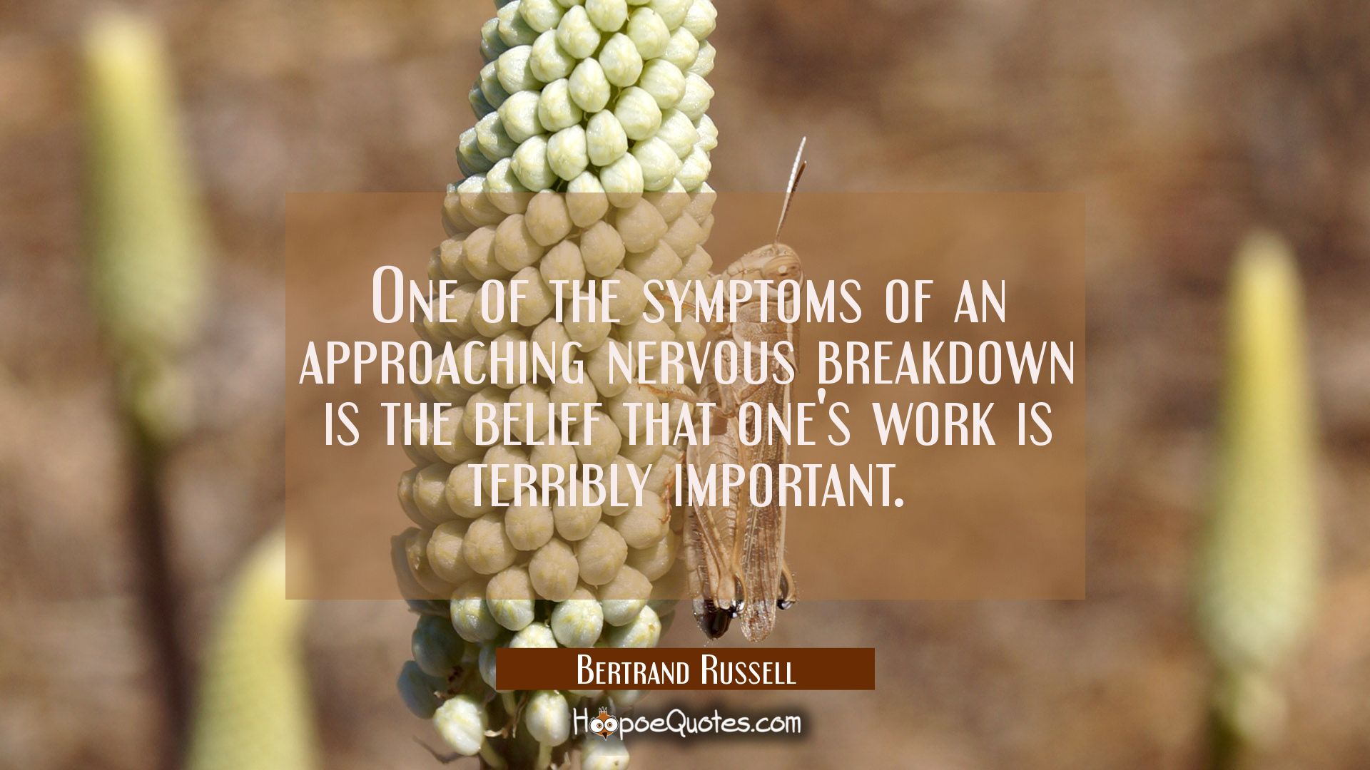 One of the symptoms of an approaching nervous breakdown is the belief that one's work is terribly important.