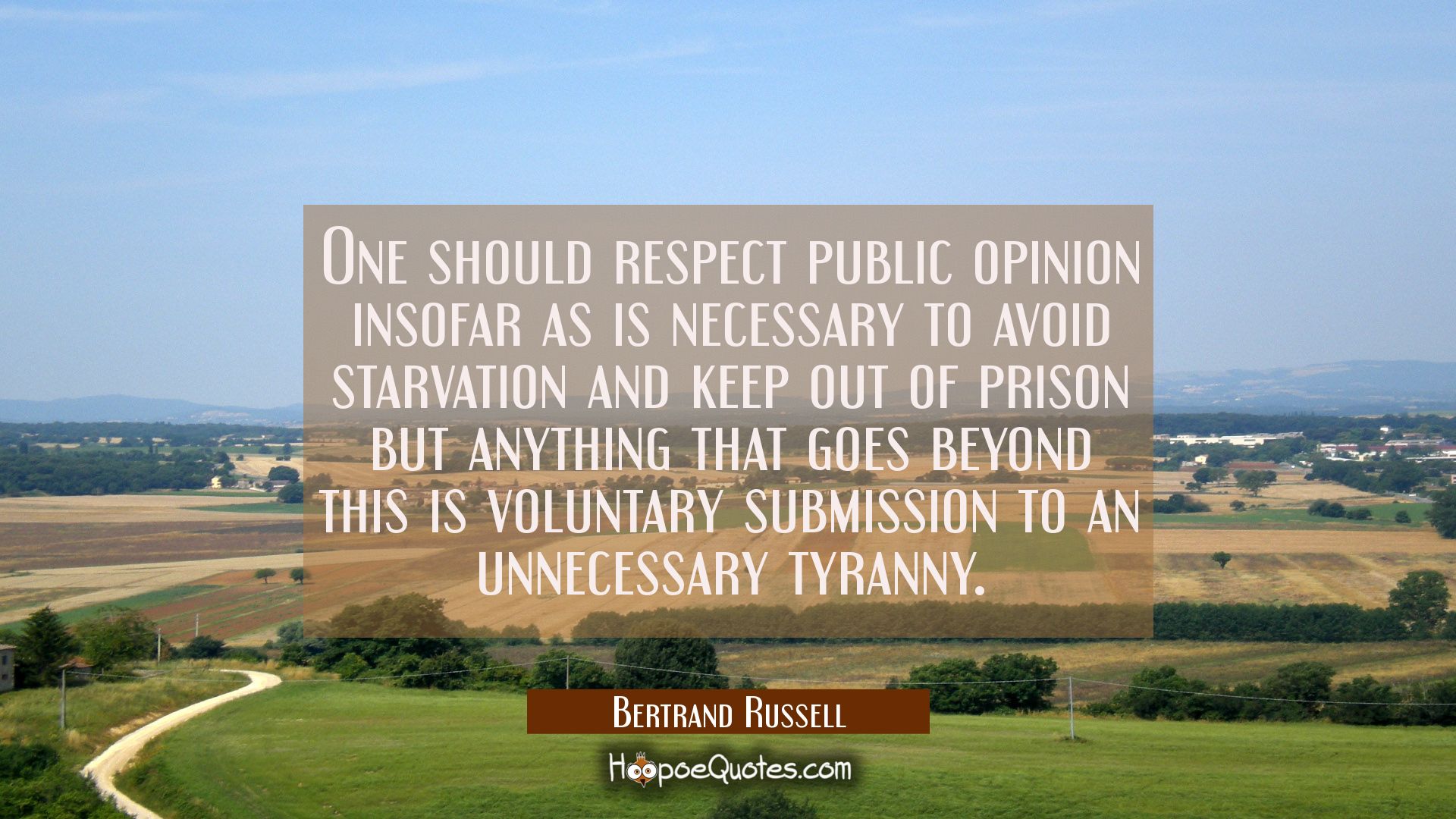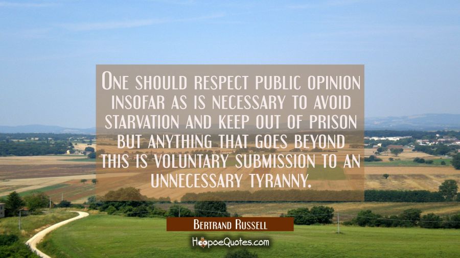 One should respect public opinion insofar as is necessary to avoid starvation and keep out of prison but anything that goes beyond this is voluntary submission to an unnecessary tyranny.