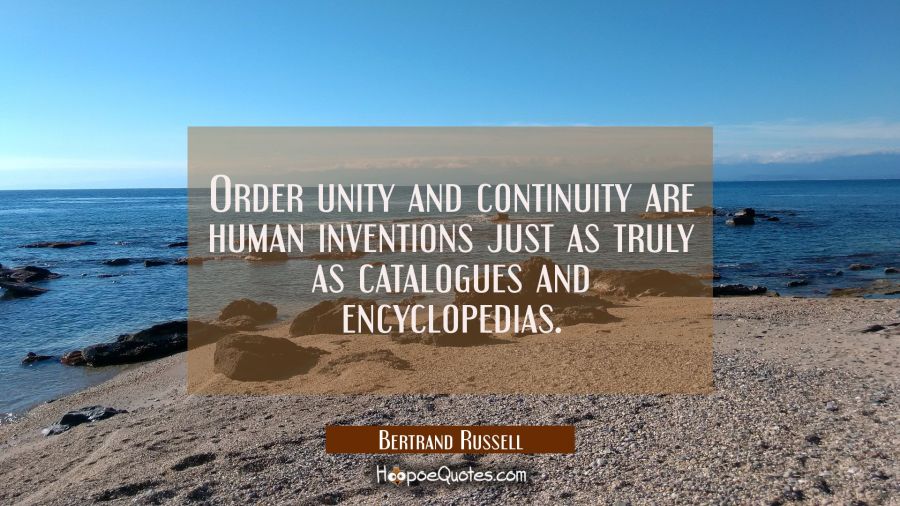 Order unity and continuity are human inventions just as truly as catalogues and encyclopedias.