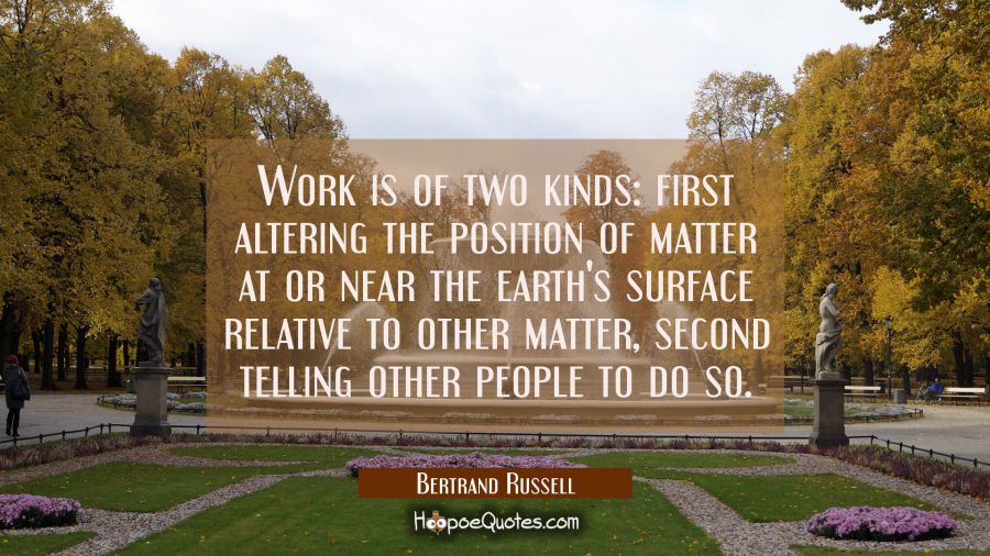 Work is of two kinds: first altering the position of matter at or near the earth's surface relative to other matter, second telling other people to do so.