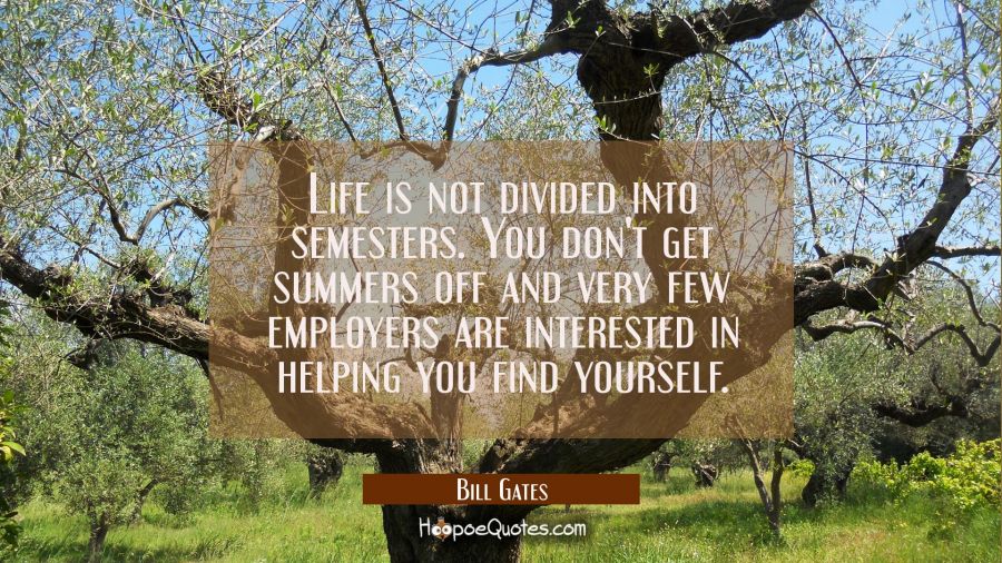 Life is not divided into semesters. You don't get summers off and very few employers are interested in helping you find yourself.