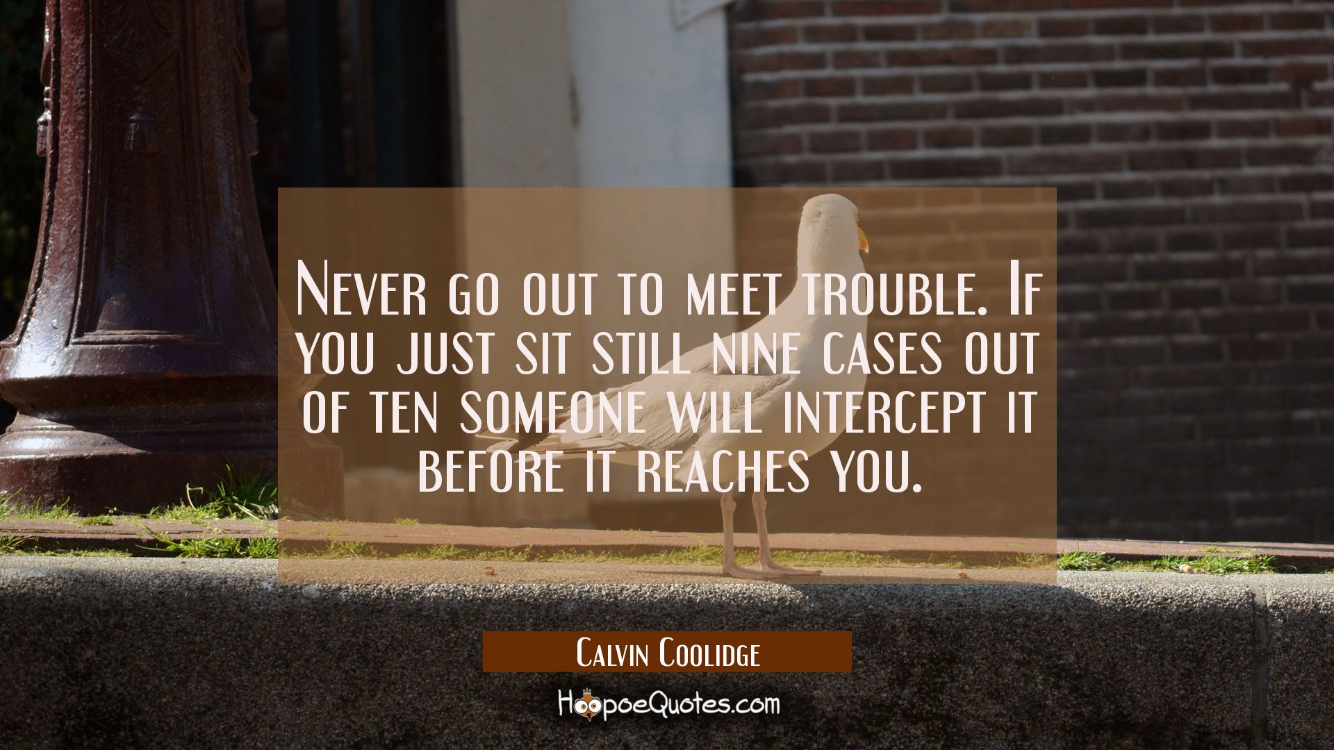 Never go out to meet trouble. If you just sit still nine cases out of ten someone will intercept it before it reaches you.