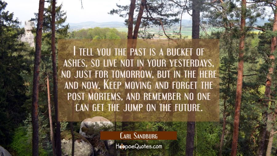 I tell you the past is a bucket of ashes, so live not in your yesterdays, no just for tomorrow, but in the here and now. Keep moving and forget the post mortems, and remember no one can get the jump on the future.