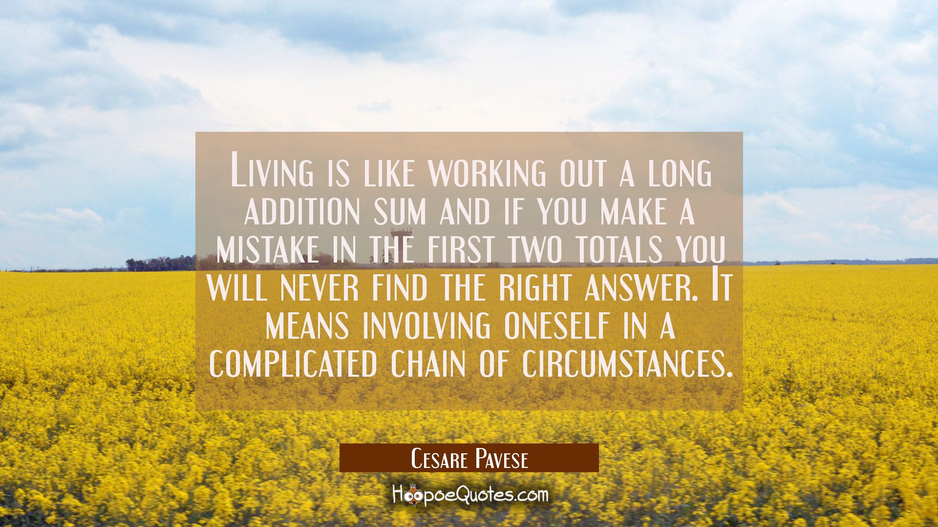 Living is like working out a long addition sum and if you make a mistake in the first two totals you will never find the right answer. It means involving oneself in a complicated chain of circumstances.