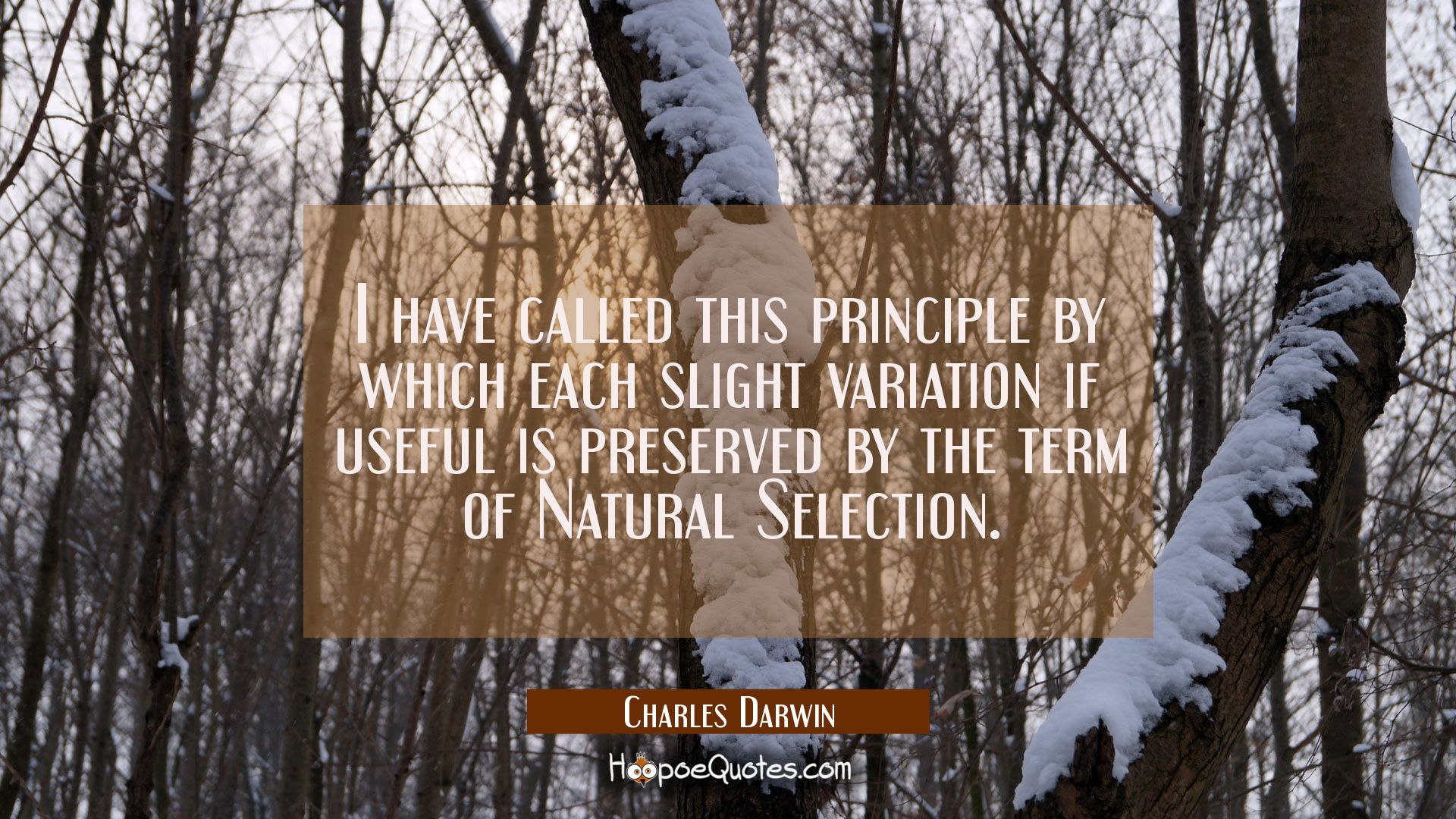 I have called this principle by which each slight variation if useful is preserved by the term of Natural Selection.