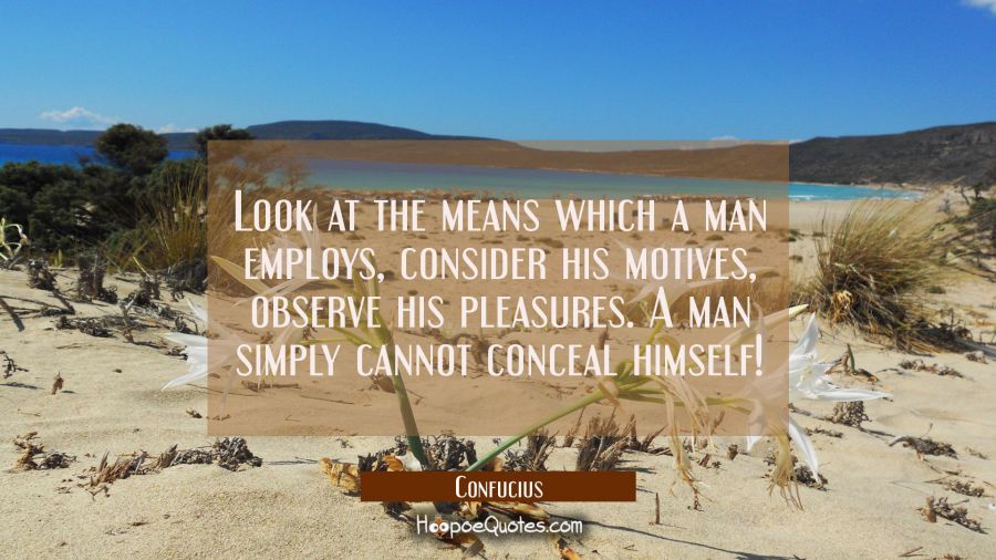 Look at the means which a man employs, consider his motives, observe his pleasures. A man simply cannot conceal himself!