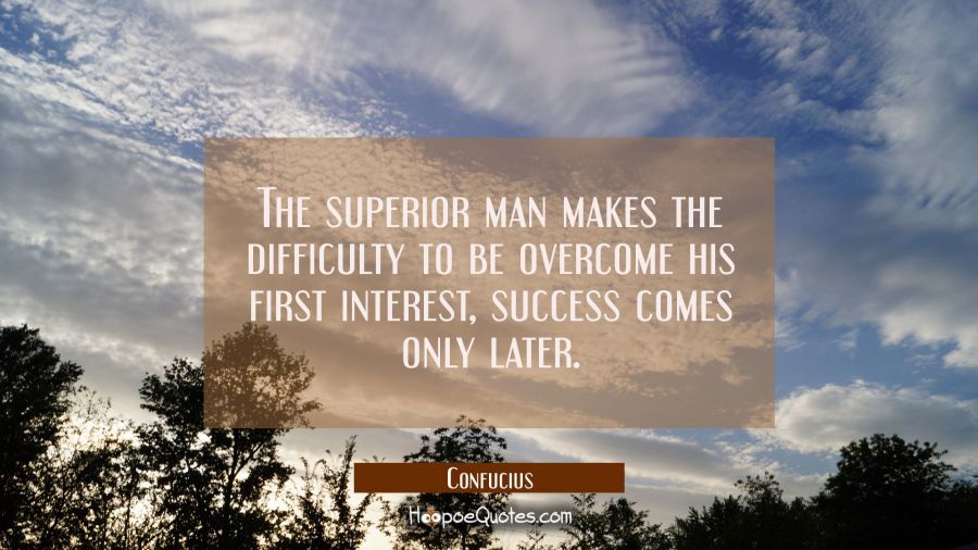 The superior man makes the difficulty to be overcome his first interest, success comes only later.