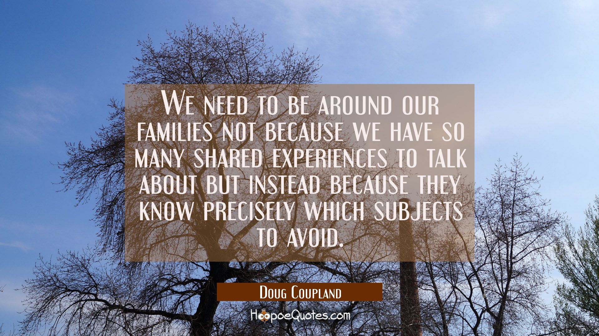 We need to be around our families not because we have so many shared experiences to talk about but instead because they know precisely which subjects to avoid.