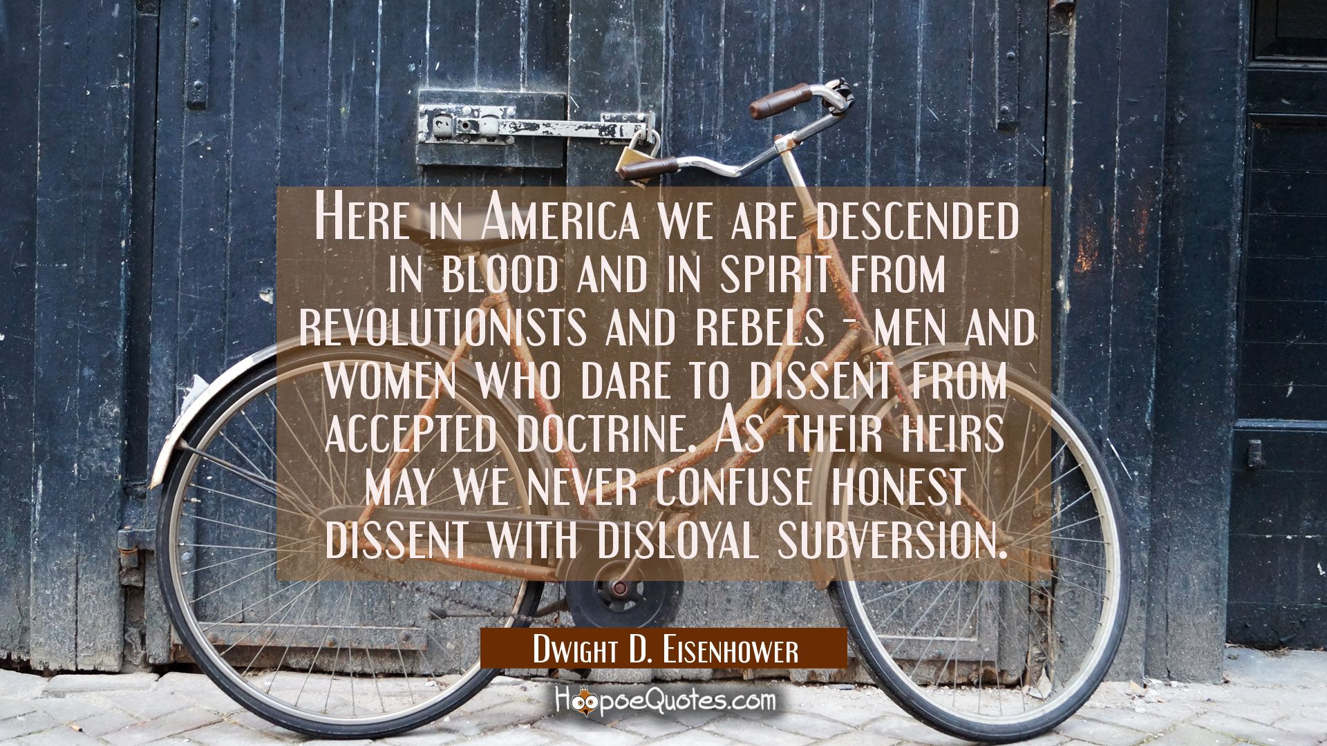 Here in America we are descended in blood and in spirit from revolutionists and rebels - men and women who dare to dissent from accepted doctrine. As their heirs may we never confuse honest dissent with disloyal subversion.