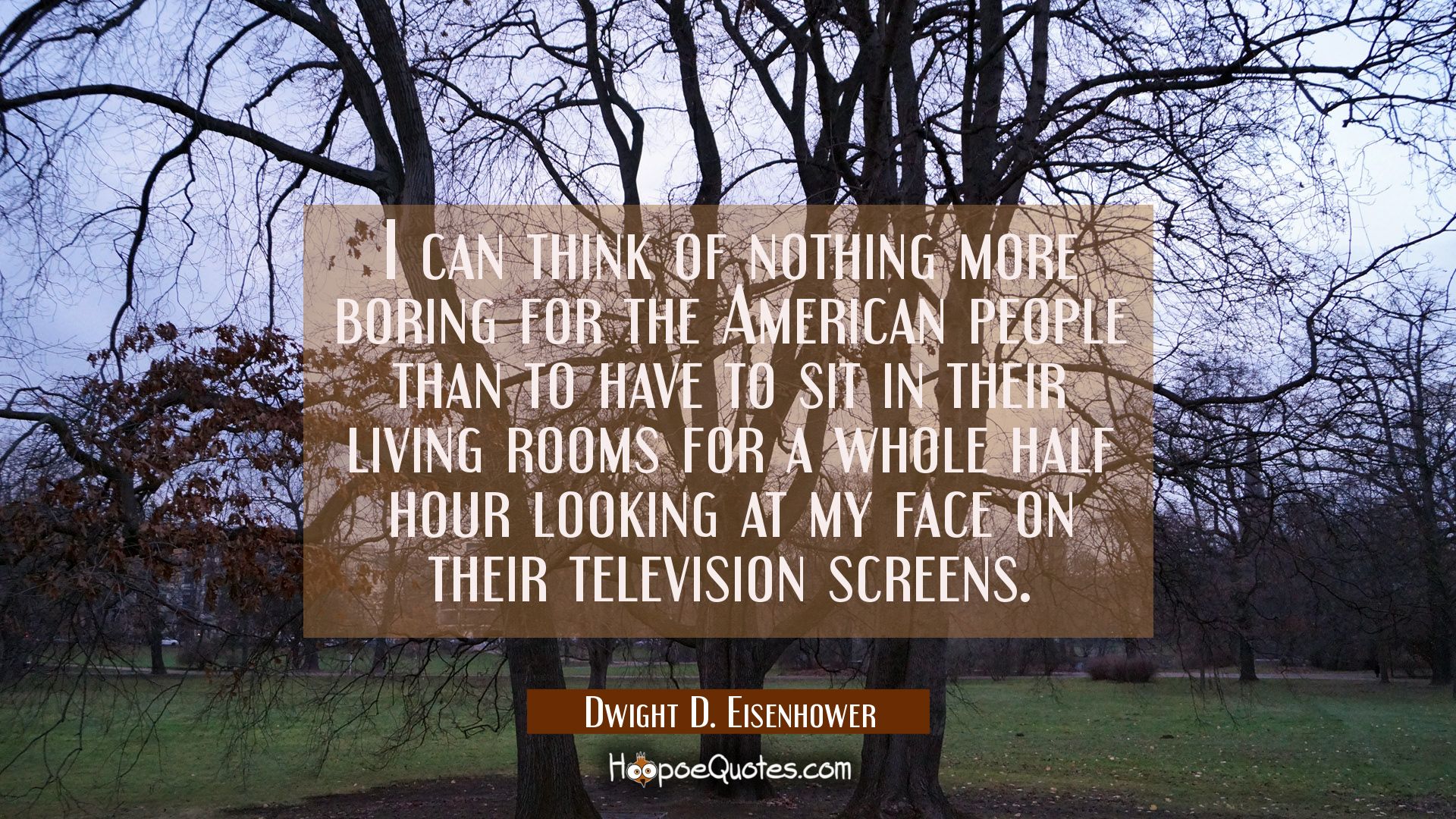 I can think of nothing more boring for the American people than to have to sit in their living rooms for a whole half hour looking at my face on their television screens.