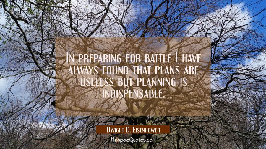 In preparing for battle I have always found that plans are useless but planning is indispensable.