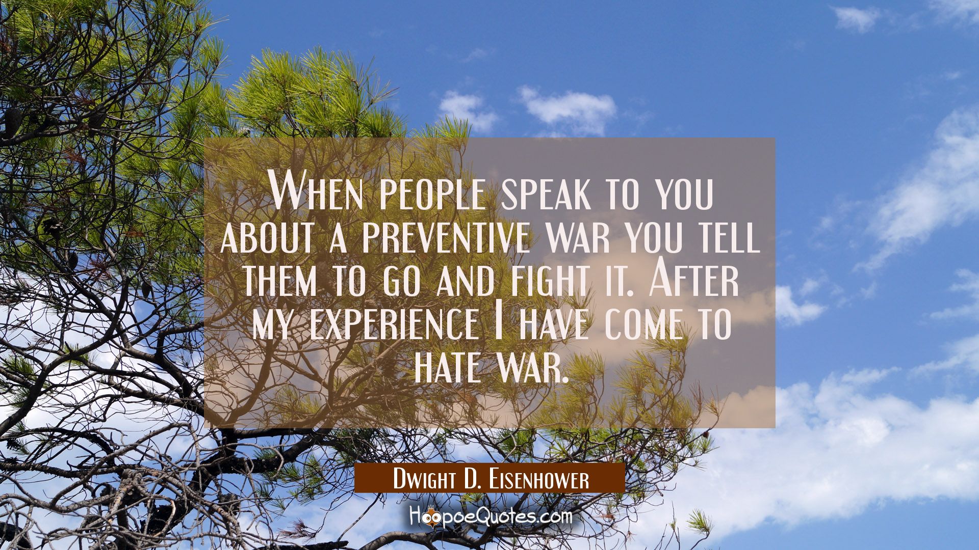 When people speak to you about a preventive war you tell them to go and fight it. After my experience I have come to hate war.