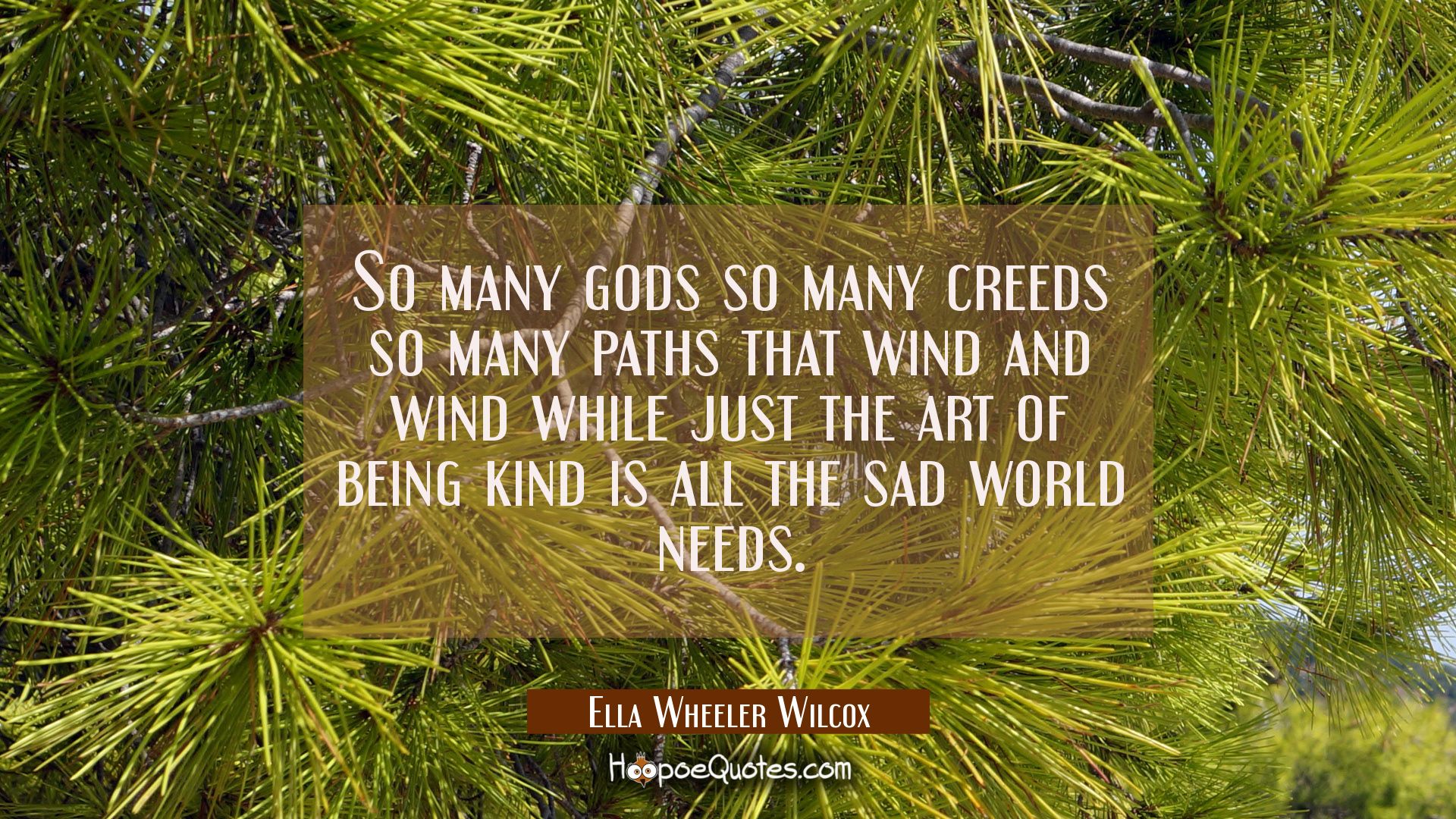 So many gods so many creeds so many paths that wind and wind while just the art of being kind is all the sad world needs.