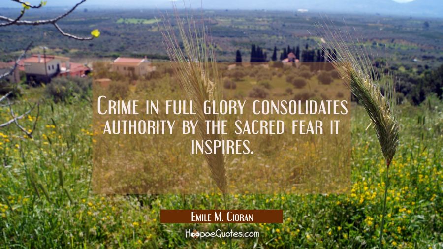 Crime in full glory consolidates authority by the sacred fear it inspires.