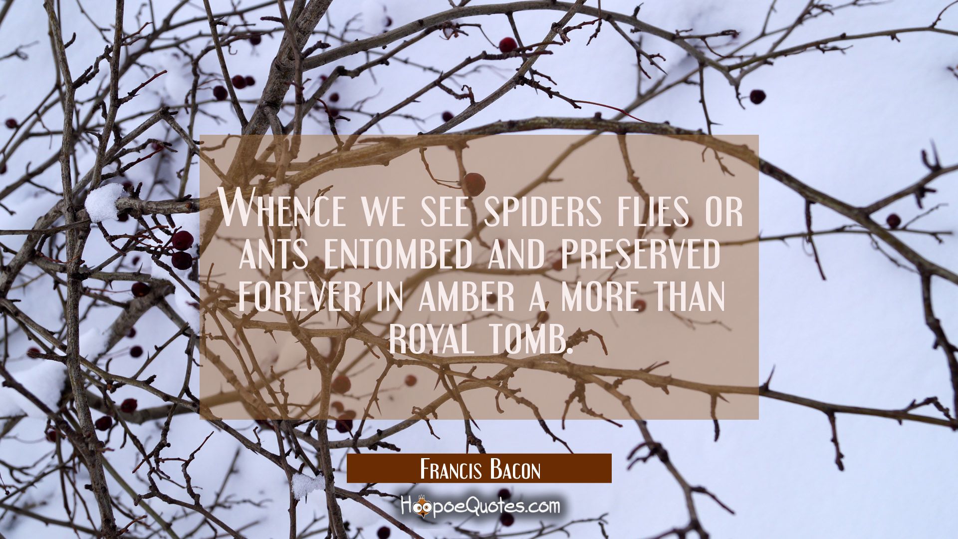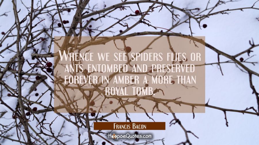 Whence we see spiders flies or ants entombed and preserved forever in amber a more than royal tomb.