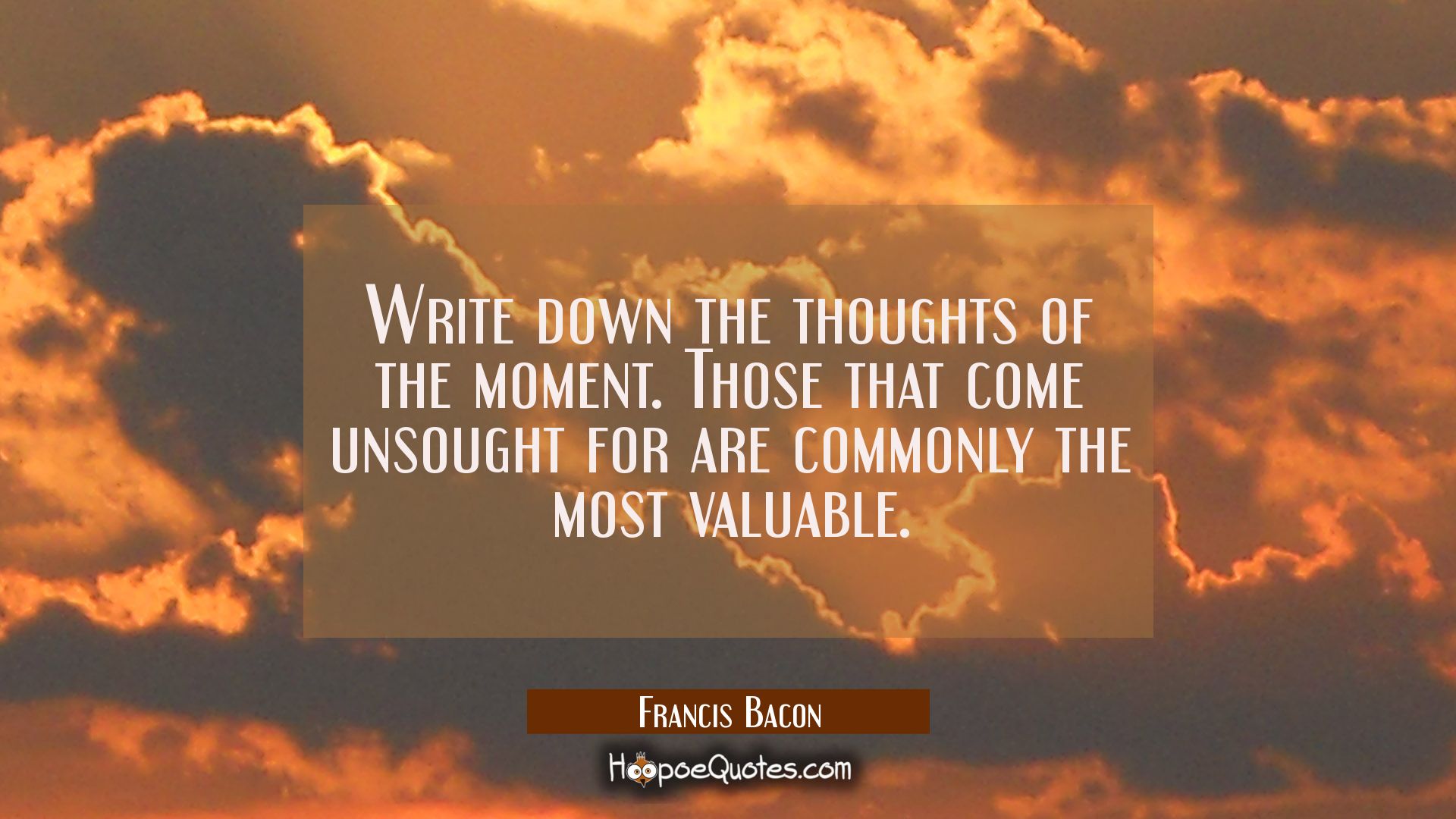 Write down the thoughts of the moment. Those that come unsought for are commonly the most valuable.