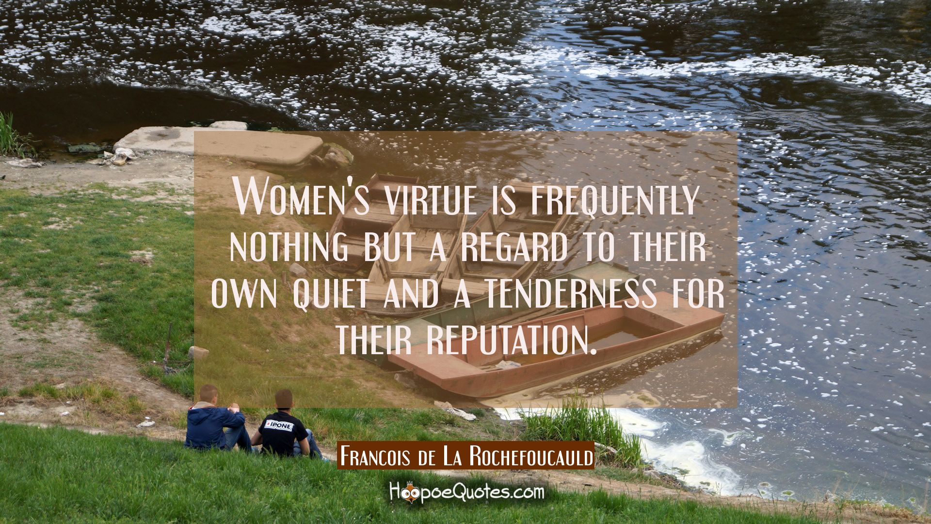 Women's virtue is frequently nothing but a regard to their own quiet and a tenderness for their reputation.