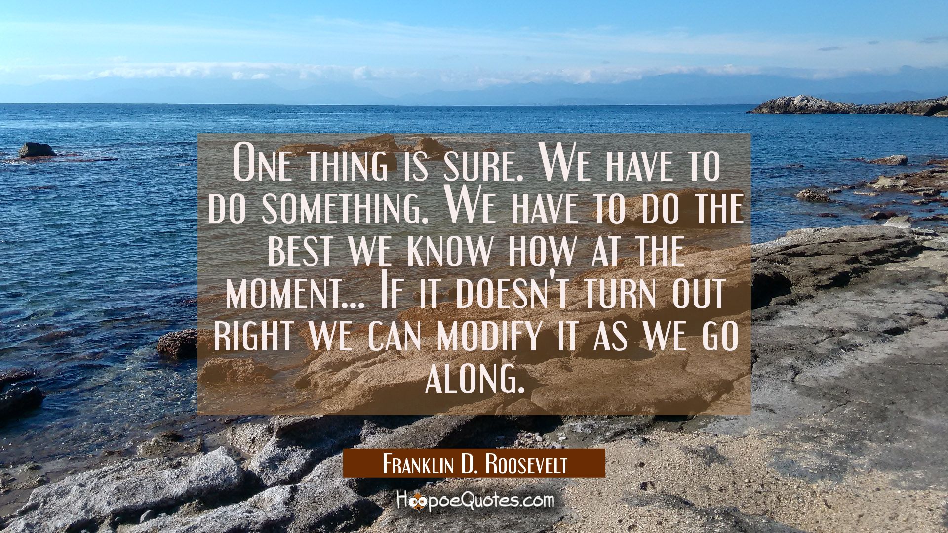 One thing is sure. We have to do something. We have to do the best we know how at the moment... If it doesn't turn out right we can modify it as we go along.